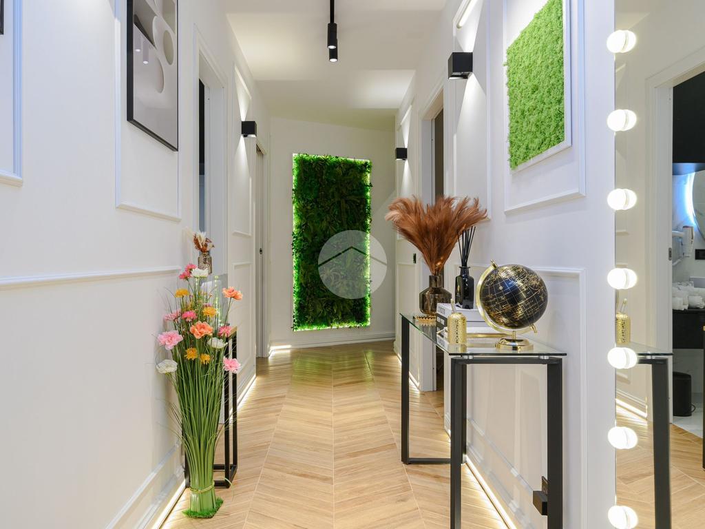 - ingresso moderno e ben illuminato, pavimento in grès porcellanato effetto legno a spina ungherese, che dona calore e raffinatezza all'ambiente. Luci a LED integrata nel battiscopa e faretti sul soffitto valorizzano lo spazio, creando un'atmosfera accogliente.