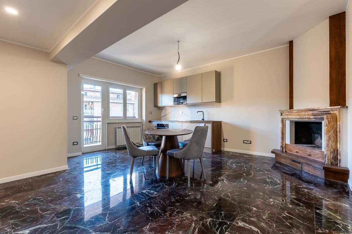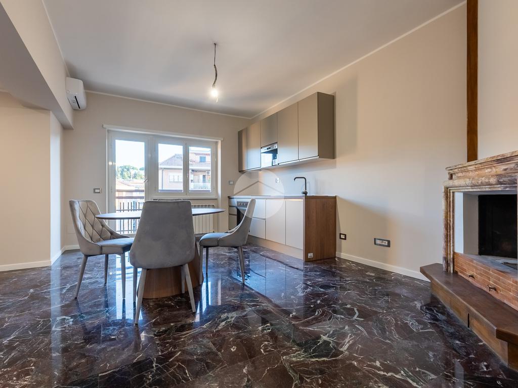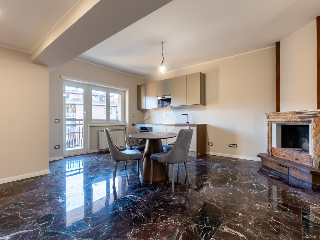 L'appartamento presenta pavimenti in marmo, infissi in doppio vetro, tapparelle elettriche centralizzate con sistema domotico integrabile con Wi-Fi domestico, impianti nuovi certificati e climatizzatori in ogni ambiente. Riscaldamento centralizzato con caldaia a gas per acqua sanitaria.